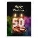 A birthday cake with candles. The candles are made up of the number 50, for a 50th birthday. A birthday card suitable for everybody.