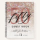 Modern chick 50th Birthday Guest Book Notebook.  Design featuring champagne sparkly glitter texture, fifty in trendy handwritten script in black and rose gold colour. Personalise with your details in block capital lettering.