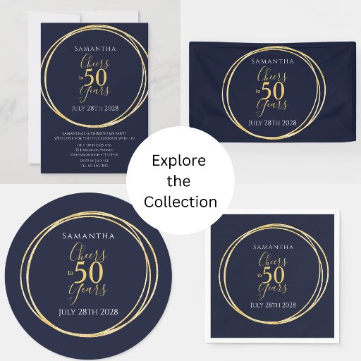 50th Birthday Navy Gold Cheers to 50 Years PartyDesigned by Only The Moon