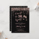 50th Birthday - Cheers To 50 Years Rose Gold Black Invitation