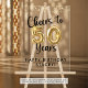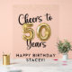 Celebrate a 50th birthday with a welcome sign printed on acrylic featuring the title CHEERS TO 50 YEARS with faux metallic gold balloon numbers and modern script typography, confetti and your custom message in your choice of text and graphics colours (shown in black). OPTIONS: The sample is shown in a 18x24" size; other sizes are available. ASSISTANCE: For help with design modification or personalisation, resizing or transferring the design to another product, contact the designer BEFORE ORDERING via the Zazzle Chat MESSAGE tab below or email makeitaboutyoustore@gmail.com.