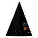 Go all out and give your guests a 50th Birthday Colourful Balloons Personalised Party Hat. This fun design has a black customisable background and front of card has the text "Happy 50th Birthday" in colourful primary rainbow colours and pink balloons. Personalised with name in white lettering on front centre.