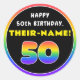 50th Birthday: Colourful Rainbow # 50, Custom Name Classic Round Sticker