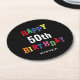 50th Birthday Colourful Typography Fun Personalise Round Paper Coaster