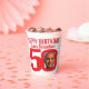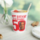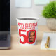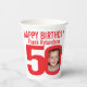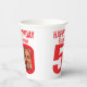 Personalise these bright red and white 50th birthday party paper cups with your own birthday name and two photograph in the 0 of 50. Fun text and personalised photo design. Ideal for using at a fiftieth birthday party to show a photo of your birthday boy or girl now and one from their past. Other matching items are available. © Original graphic art and design by www.mylittleeden.com