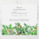 Perfect table decor for a December birthday party. Green holly is the birth flower for that month. It forms a pretty watercolor bottom border on this rustic personalised wine label. The birthday guest of honour's name, age and birthdate are placed above it using elegant calligraphy and typography. All text is editable.