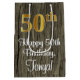50th Birthday: Elegant Faux Gold Look #, Faux Wood Medium Gift Bag