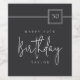 The sleek minimalist layout pairs a deep matte black background with refined ivory-beige typography—featuring a bold sans-serif for the details and a graceful handwritten script for the word “Birthday.” A sleek square badge highlights the milestone age, adding a sophisticated touch for any adult birthday celebration.