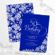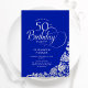 50th Birthday Elegant Royal Blue Silver Roses Invitation