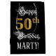 50th Birthday ~ Fancy Script; Faux Gold Look; Name Medium Gift Bag