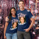Fifty and fabulous, 50th birthday half century glitter style effect fifty script text in rose pink and silver hues with with text on dark coloured t-shirt add your own photo. Personalise this 50th birthday shirt with your message and square shaped photo of your birthday girl. Other years and matching items are available. © Original design by Sarah Trett for www.mylittleeden.com on Zazzle.