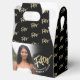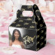 Fifty gold script effect two sided photo party favour boxes. Personalise this 50th birthday party script photo favour box with your own birthday girls name and two photos of your birthday girl or boy one on each side. Other years and matching items are available and can be created by request. © Original design by Sarah Trett for www.mylittleeden.com on Zazzle.