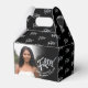 Fifty silver script and silver effect two sided photo party favour boxes. Personalise this 50th birthday party script photo favour box with your own birthday girls name and two photos of your birthday girl or boy one on each side. Other years and matching items are available and can be created by request. © Original design by Sarah Trett for www.mylittleeden.com on Zazzle.
