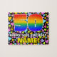 This vibrant and exciting birthday themed jigsaw puzzle design features a large number “50” with a multicolored rainbow spectrum inspired gradient pattern, along with the message “HAPPY 50th BIRTHDAY,”, and a customisable recipient name. The background has a cheerful, colourful, loving heart shapes pattern. An eye-catching, customisable birthday puzzle like this might be a fun way to send birthday greetings to somebody who is celebrating their fiftieth birthday. [~Z0000611]