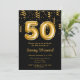This elegant and glamourous birthday invitation features the number 50 in gold with gold confetti. The text combines handwritten script and modern sans serif fonts for a classy and sophisticated look.