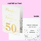 This gold foil 50th birthday card is perfect for the woman who has a little sparkle in her. The front features a beautiful gold foil design which can be customised with her name -- after her name the words "you are Fabulous at 50" appear along with some confetti. Inside the card the words "Nobody sparkles like you do! Happy Birthday" appear along with some more confetti. This card will make her smile! Copyright Kathy Henis