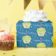 A bright bark blue, green, and yellow colourful graphic cupcake wrapping paper with the custom number 50 for any 50th birthday. Make your gift more than just a pretty package with cupcakes, streamers, confetti and candles. Make it personal with the number 50 or customise it to any birthday year.