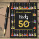 Add a name to the modern typography template ‘Alexander Rocks 50’ and create the perfect personalised rock and roll 50th birthday black and gold cool guitar budget greetings card. This funky psychedelic guitar pattern includes electric guitars with Fire flame pattern and red pick guard, multicolored semi acoustic guitars and psychedelic classic acoustic guitar art. Colourful musical instrument illustrations to celebrate fifty in rock n roll style, ideal for a guitarist, musician and music lovers. Any guitar player will tell you that you can never have too many guitars. This cool modern musical instrument design celebrates the music energy of this wonderful musical instrument and is the perfect way to rock a fiftieth birthday celebration. Original artwork by artist Catherine Sweetman