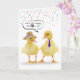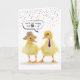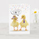 Cute yellow duckings with a speech bubble and party confetti on a white background for 50th birthday.