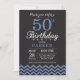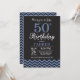 50th Birthday Invitation with Black and Blue Chevron. Chalkboard. Adult Birthday. Man or Women Bday Invite. For further customisation, please click the "Customise it" button and use our design tool to modify this template.