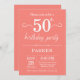 50th Birthday Invitation with Coral Background. Adult Birthday. Men or Women Bday Invite. 13th 15th 16th 18th 20th 21st 30th 40th 50th 60th 70th 80th 90th 100th, Any age. For further customisation, please click the "Customise it" button and use our design tool to modify this template.