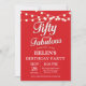 50th Birthday Invitation with String Lights Red Background. Woman Birthday Party. Fifty and Fabulous. Any age. For further customisation, please click the "Customise it" button and use our design tool to modify this template.