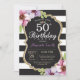 50th Birthday Invitation for women. Black and Gold Birthday Party Invite. Gold Glitter. Purple Watercolor Floral Flower. Black and White Stripes. Chalkboard. Printable Digital. For further customisation, please click the "Customise it" button and use our design tool to modify this template.