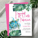 Celebrate your fiftieth birthday in island style with these fun and unique 50th birthday invitations! Featuring a watercolor sea turtle surrounded by lush tropical botanicals, this design is perfect for a Hawaiian Luau party. The playful "Fifty and Fabulous" lettering adds a festive touch, making it a great choice for an adult birthday celebration.