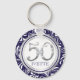 50th Birthday Key Chain-Navy Blue & Silver Ring