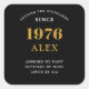 50th Birthday Name 1976 Black Gold Elegant Chic Square Sticker