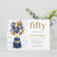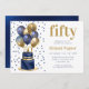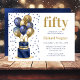 This fabulous men's 50th birthday party invitation featuring a 2-layer navy blue and gold cake with navy blue and gold balloons, the number 50 in gold and shiny blue confetti would be perfect for celebrating your husband, brother, dad, friend, co-worker. It is traditional and classic while being fresh, modern and contemporary. The back is a coordinating navy blue foil.