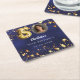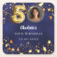 50th birthday navy blue gold stars photo square paper coaster