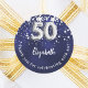 A sticker for a 50th birthday celebration. A navy blue background colour with faux silver stars. The blue colour is uneven. Add your name, text. Text: Thank you for celebrating with me!