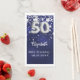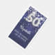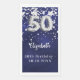 For a 50th birthday celebration. A navy blue background colour with faux silver stars. The blue colour is uneven. Add your name, text.