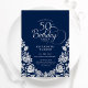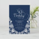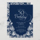 50th Birthday Navy Silver Roses Invitation