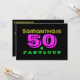 This is a fun retro, neon, 50th birthday, 50 and fabulous birthday design. This fifty and fab design has neon magenta pink, green and yellow typography with a black background. Perfect for a fun and unforgettable 50th birthday party celebration. To personalise, add your name, party and RSVP details by using the personalise this text box. Check out the design editing tool to change the colour or font. If you need help with customisation and personalisation, or for a custom design contact me via zazzle chat or email: ursuladawnmoon@gmail.com