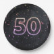 50th Birthday Neon Sign On Black Paper Plate