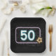 Glowing neon marquee sign with a star on a dark brick city wall for 50th birthday party