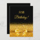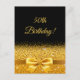 Elegant, classic, glamourous and feminine style party invitation. A faux gold coloured ribbon and bow with golden glitter and sparkle, a bit of bling and luxury for a birthday. Black background. With the text: 50th Birthday! on front