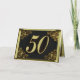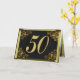 Custom greeting text, regal decorated with gold text and flourish ornate corners folded greeting card with black background for a 50th birthday. Alternatively can be used for an anniversary.