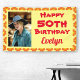 Celebrate her special day with this 50th Birthday Orange Flower Photo Banner. Personalise it with her photo, name, and age. This colourful floral banner features orange blossoms and a bold yellow background with bright red text.