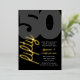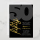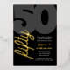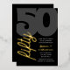50th Birthday Invitation with luxury gold foil. Dramatic but simple invite with "fifty" lettered in gold foil script, an oversized number 50 and easy to edit invitation wording template. Chic classy and bold yet understated and minimal typography design 50th birthday party invite for adult male or female.