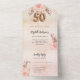 50th birthday pampas grass rose pink florals RSVP All In One Invitation