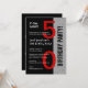 50th Birthday Part Modern Red Silver Black W1792 Invitation