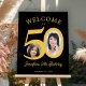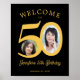 50th birthday party 2 photo black gold welcome poster
