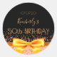 A sticker for a girly and glamourous 50th birthday party. An elegant black background with faux rose gold confetti. The text: The name is written with a golden modern hand lettered style script. Template for name, age 50 and a date.