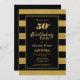 An elegant black and gold glitter striped 50th birthday party invitation.