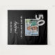 A tapestry for a 50th birthday party. Black background, white text. Personlize and add a high quality photo, text, name and date. Number 50 is writen with a faux silver balloon style font. Can be used as wall decor for the party or as a photo booth backdrop.