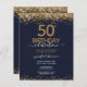 Elegant Faux gold glitter with shimmering confetti highlights on the top and bottom border. All text is adjustable and easy to change for your own party needs. Great elegant 50th birthday template design.