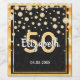 An elegant, glamourous and girly 50th birthday wine or sparkling wine bottle label. Black coloured faux glitter with faux golden diamond sprinkle and a golden frame. Templates for a name, age 50 and a date. Date of birth or the date of the party/anniversary. White and golden coloured letters. The name is written with a hand-lettered style script.